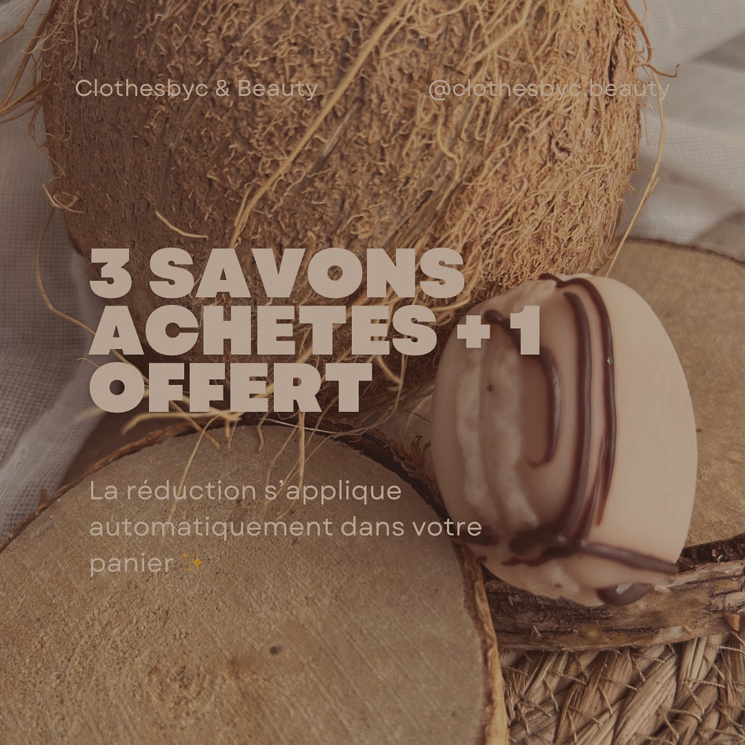 Vous avez été nombreuses à nous le demander. Alors, pour vous remercier de votre confiance, voici une offre promotionnelle : 3 savons achetés le 4 ème offert*